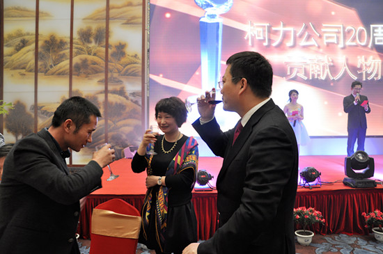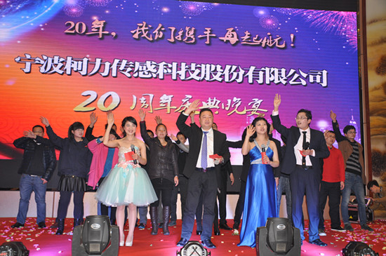 “尊敬的各位來賓、各位朋友、女士們、先生們:在這美好的夜晚,我們迎來了柯力20周年慶典?,F(xiàn)在,請大家共同舉杯,祝愿諸位在寧波度過一個美好的夜晚!祝愿諸位工作順利!身體健康!闔家歡樂!萬事如意!”柯董在作祝酒詞之后,與其夫人、公司高層領(lǐng)導(dǎo)團隊副總裁兼品管總監(jiān)林德法、副總裁項勇、副總裁兼安徽公司總經(jīng)理馬形山、研發(fā)中心副主任兼?zhèn)鞲衅鳟a(chǎn)品總監(jiān)、研發(fā)中心副主任兼儀表產(chǎn)品總監(jiān)趙寧、總裁助理陳建鵬、總裁助理鄔立軍、總裁助理兼任系統(tǒng)成套設(shè)備事業(yè)部經(jīng)理胡向光,共同邀請現(xiàn)場各位嘉賓舉杯暢飲。