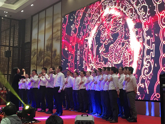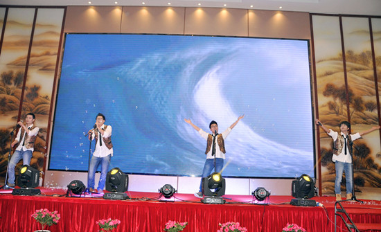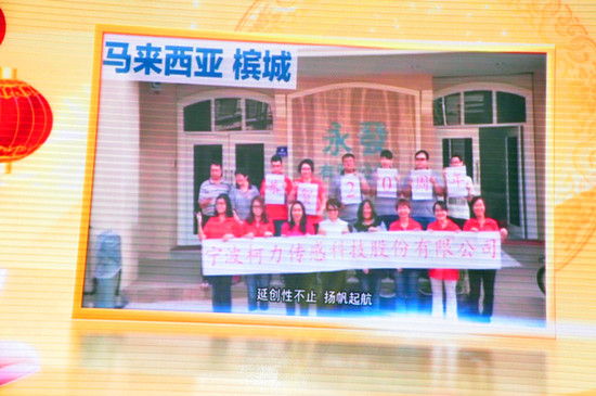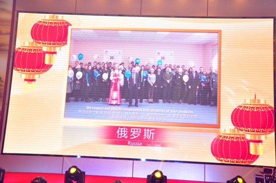 串燒開場舞立即點燃了現(xiàn)場的氛圍。晚宴節(jié)目共分歡迎、感恩、祝福、歡慶4個篇章?!痘丶业穆贰肥枪?jié)目組在3月8日當天收集工作人員接站、接機照片,并連夜趕制的暖心視頻,讓嘉賓們感受了一種賓至如歸、回到柯力大家庭的溫暖。一曲《鴻雁》,博得了現(xiàn)場的陣陣掌聲;《光陰的故事》,通過圖片,現(xiàn)場回顧了成長,記錄了友情。緊接著,晚宴現(xiàn)場進行了“20周年貢獻人物頒獎”,大屏幕播放了來自各部門、子公司當選人員的主要事跡,充滿了正能量。頒獎之后,老員工代表彭燕經(jīng)理分享了自己20年的心得,并代表老員工們感謝了公司長期以來的關(guān)懷,還感謝了客戶、供應(yīng)商、行業(yè)領(lǐng)導(dǎo)一直以來對公司發(fā)展的支持,最后,她希望新員工們能夠為公司的發(fā)展再接再厲。之后,《一路上有你》,表達了公司對客戶、供應(yīng)商、行業(yè)領(lǐng)導(dǎo)20年來的感激之情;業(yè)務(wù)團隊《真心英雄》大合唱,唱出了精誠協(xié)作、勇往直前的滿腔熱情。當晚,國內(nèi)外客戶朋友也紛紛送來美好的祝福和節(jié)目,節(jié)目組收到了來自常州、中國臺灣、加拿大、烏克蘭、美國、哥倫比亞、澳大利亞、南非、伊朗等客戶朋友的賀文;并且,現(xiàn)場播放了來自俄羅斯、巴西、馬來西亞、印尼等國外客戶發(fā)來的視頻祝福及表演節(jié)目,充分體現(xiàn)了20年來公司國際化發(fā)展成果。之后,供應(yīng)商代表的《今夜舞起來》,反映了戰(zhàn)略合作伙伴對柯力20周年慶的美好祝福。中高層領(lǐng)導(dǎo)團隊《感恩的心》合唱,表達了公司對客戶、對供應(yīng)商、對行業(yè)領(lǐng)導(dǎo)的深深感激。研發(fā)團隊《柯力研發(fā)進行曲》,通過改編,體現(xiàn)了研發(fā)創(chuàng)新精神及“靜心敬業(yè)”之精氣。男生四人組《海闊天空》展現(xiàn)了柯力在未來10年、20年發(fā)展中,必將開創(chuàng)一片更加廣闊前景的豪情壯志。當晚,除了總公司的節(jié)目之外,四家子公司也各自選派了精心準備的歡慶節(jié)目:余姚太平洋《包容》個唱、余姚銀環(huán)《愛我中華》合唱,唱出了各自的特色,體現(xiàn)了母子公司文化的互通、融合;沈陽龍騰帶來的二人轉(zhuǎn)《龍騰模仿秀》、安徽柯力帶來的黃梅戲《對花》,讓現(xiàn)場嘉賓感受了地方特色文化,感受了子公司員工的多才多藝,以及他們對總公司滿滿的祝福。最后,老員工《明天會更好》大合唱,更是唱出了老員工的昂揚斗志,以及對柯力的深深祝福之情。為了更好地體現(xiàn)節(jié)目互動性,晚宴專門開設(shè)了互動點歌環(huán)節(jié)和抽獎環(huán)節(jié)。值得一提的是,互動點歌環(huán)節(jié),現(xiàn)場嘉賓踴躍點歌,上臺為大家即興獻唱,并送上美好祝福,使得整個晚宴節(jié)目精彩不斷。抽獎環(huán)節(jié)也邀請了現(xiàn)場嘉賓為大家開獎,使得現(xiàn)場氛圍高潮迭起。最后,晚宴在《難忘今宵》的音樂中進入了尾聲,隨著6組禮炮的鳴響,整個晚宴活動圓滿成功。