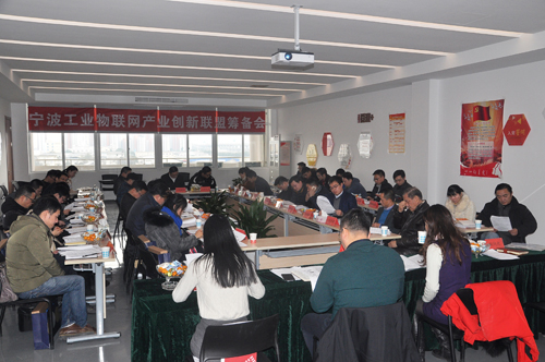 2018年2月7日下午,寧波市工業(yè)物聯(lián)網(wǎng)產(chǎn)業(yè)創(chuàng)新聯(lián)盟(以下簡稱“創(chuàng)新聯(lián)盟”)籌備會在寧波柯力物聯(lián)網(wǎng)大廈5樓黨建室召開。江北區(qū)經(jīng)信局副局長應月波、鄭敏,理事長單位寧波柯力傳感科技股份有限公司(以下簡稱“柯力集團”)總裁柯建東、柯力集團總裁助理兼柯力物聯(lián)網(wǎng)公司總經(jīng)理胡向光出席籌備會, 12家副理事長單位,23家理事單位企業(yè)家或企業(yè)管理者代表現(xiàn)場參會。