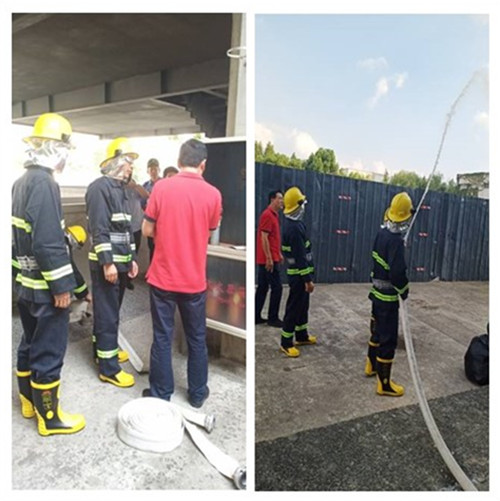 下午16點(diǎn)演練正式開始。由陳蠡隊長帶領(lǐng)員工對消防栓器材的使用做了現(xiàn)場示范,首先對消防栓進(jìn)行演練。打開消防栓門,旁邊如有按鈕則按下內(nèi)部火警按鈕,其中一人負(fù)責(zé)接好槍頭和水帶奔向起火點(diǎn),另一人則接好閥門再奔向起火點(diǎn)。接好閥門后讓水噴出即可。