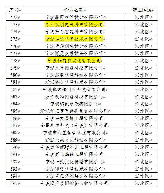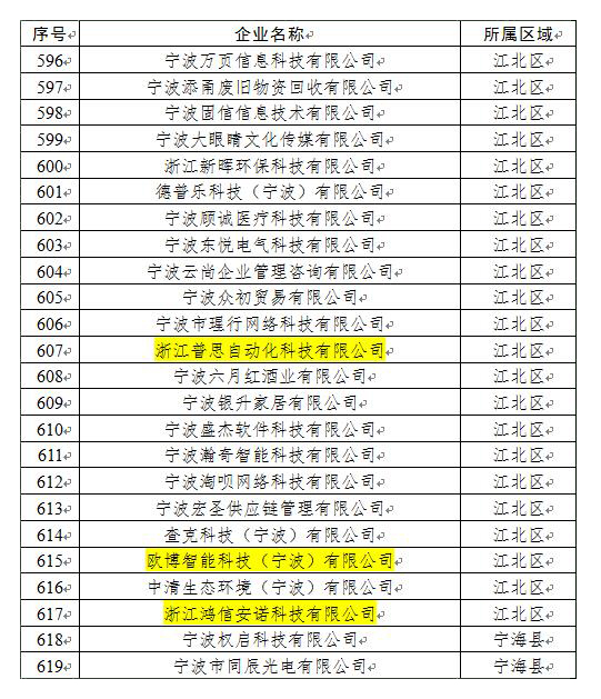 2019年11月7日,寧波市科學(xué)技術(shù)局公布了2019年寧波市第二批創(chuàng)新型初創(chuàng)企業(yè)暨浙江省科技型中小企業(yè)名單,本次全市共計1237家企業(yè)備案為2019年寧波市第二批創(chuàng)新型初創(chuàng)企業(yè)暨浙江省科技型中小企業(yè),產(chǎn)業(yè)園區(qū)共計14家企業(yè)進(jìn)入名單,分別是寧波鉑士智能科技有限公司、寧波欣皓源機(jī)械有限公司、寧波智衡物聯(lián)科技有限公司、寧波智唐智能裝備有限公司、寧波沃富物聯(lián)網(wǎng)有限公司、寧波佳文智能技術(shù)有限公司、寧波興為汽車電子有限公司、寧波舸德精密工具有限公司、浙江縱創(chuàng)電氣科技有限公司、寧波昊銳信息技術(shù)有限公司、寧波偉捷自動化有限公司、浙江普思自動化科技有限公司、歐博智能科技(寧波)有限公司、浙江鴻信安諾科技有限公司。