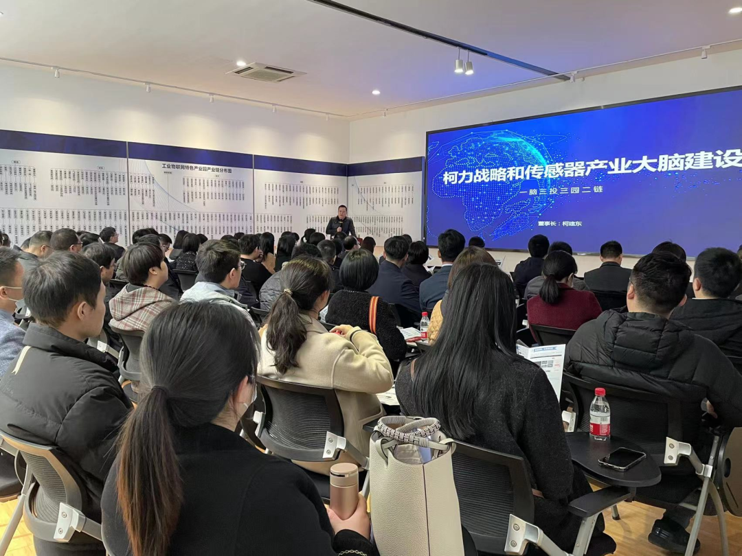 研討班一行首先參觀了工業(yè)物聯(lián)網(wǎng)城市客廳,在隨后的講座中,柯總向各位研討班年輕干部介紹了柯力集團(tuán)及集團(tuán)重點(diǎn)戰(zhàn)略。近年來,柯力集團(tuán)從傳感器走向工業(yè)物聯(lián)網(wǎng),發(fā)揮傳感器在工業(yè)物聯(lián)網(wǎng)核心元件作用,走向智能制造三化融合;從企業(yè)走向產(chǎn)業(yè)園區(qū)平臺(tái),打造工業(yè)物聯(lián)網(wǎng)產(chǎn)業(yè)生態(tài);從集團(tuán)內(nèi)循環(huán)走向產(chǎn)業(yè)大腦,開放集團(tuán)資源針對(duì)不同場景、要素進(jìn)行跨區(qū)域、跨組織融合,打造個(gè)性化解決方案和能力組件。未來,柯力將全面推進(jìn)“1+10+10+5”戰(zhàn)略布局,即一個(gè)智能傳感器產(chǎn)業(yè)大腦、十個(gè)多物理量傳感器、十大工業(yè)物聯(lián)網(wǎng)應(yīng)用場景、五大工業(yè)物聯(lián)網(wǎng)平臺(tái)建設(shè)。其中重點(diǎn)闡述了智能傳感器產(chǎn)業(yè)大腦聚焦業(yè)務(wù)場景建設(shè),從采購端、研發(fā)端、制造端、市場端、業(yè)務(wù)端、人才端和財(cái)審端,聯(lián)合企業(yè)、協(xié)會(huì)、院校和園區(qū)等生態(tài),構(gòu)建8大業(yè)務(wù)應(yīng)用場景及4大生態(tài)應(yīng)用場景,分別是物聯(lián)網(wǎng)解決方案、線上商城、選材之家、工程師社區(qū)、人才之家、云端產(chǎn)業(yè)園、產(chǎn)業(yè)服務(wù)、企業(yè)云臺(tái)、產(chǎn)業(yè)鏈圖譜、智能推薦、應(yīng)用集市、企業(yè)云倉等,賦能傳感器行業(yè),實(shí)現(xiàn)產(chǎn)業(yè)大腦生態(tài)可持續(xù)發(fā)展。