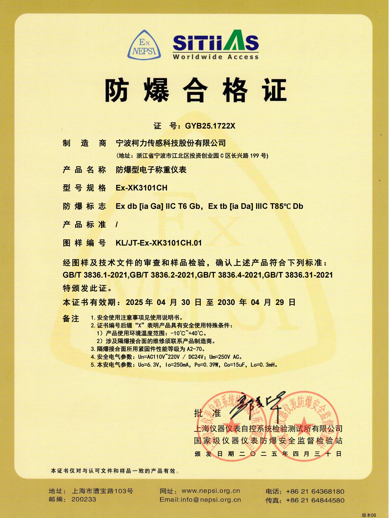 防爆合格證 Ex-XK3101CH(2030.4.29到期) 下載